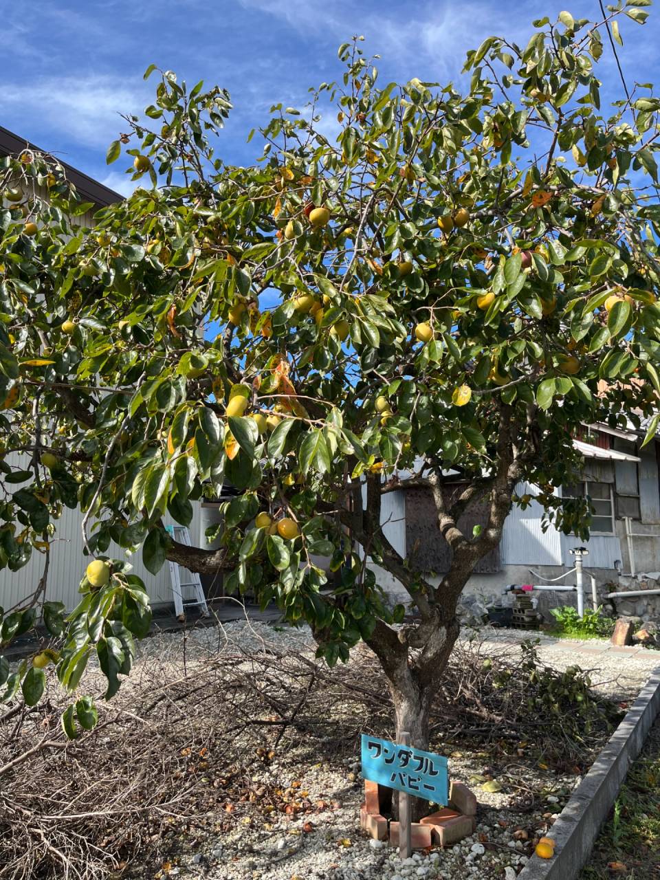敷地内の柿の木の実も大きくなり色づき始めました。